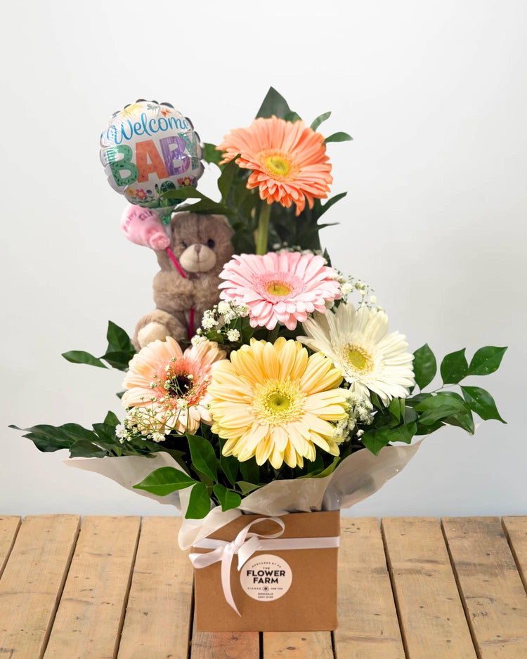 Our images are for illustrative purposes as colours of flowers will vary slightly based on what is picked each day. (Teddy & Balloon may vary in colour and designed with current stock.)