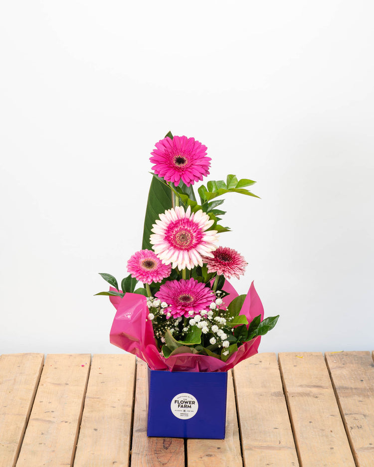 The flowers in your final arrangement may vary from the product image above but will be in the same style and colour scheme. Our experienced floral designers will create the arrangement using the freshest and most beautiful flowers available from our farm on the day. For more information, see our Terms & Conditions page.
