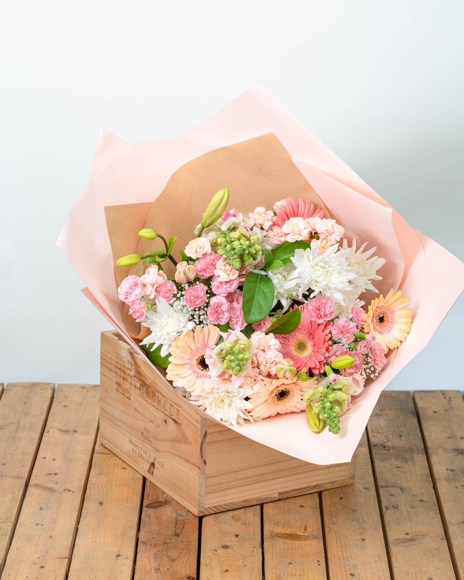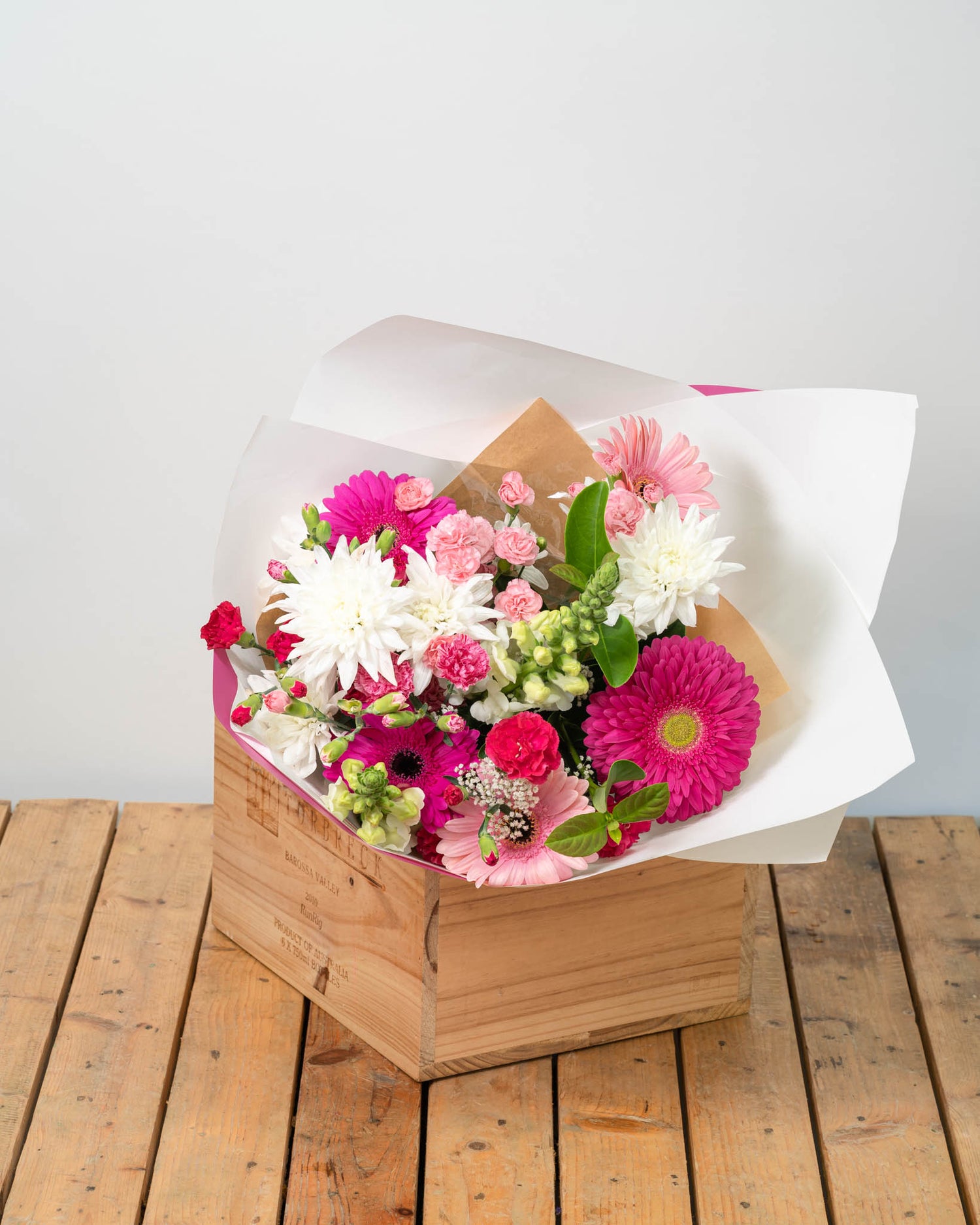 Our daily bunch is a gorgeous seasonal flower mix picked for you daily. In this bunch you’ll receive a variety of the very best in Australian grown flowers, expertly picked and expertly arranged. This bouquet might includes pastels, bright, pinks and whatever flowers are the best in season and in bloom. Each of our daily bunches are unique so you can be rest assured you will be receiving a one-of-a-kind arrangement for that someone special.