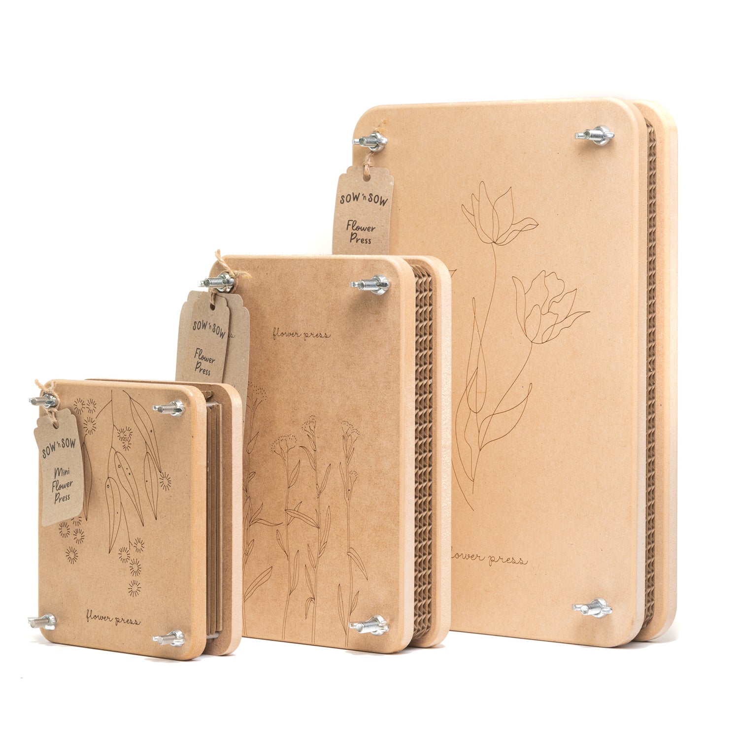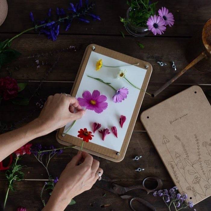 To press your blooms, simply pick out some flowers from your gifted bouquet or from the garden, then arrange them on the sheets of cardboard provided. Tighten the nuts, and leave the blooms to dry for 3-4 weeks.
